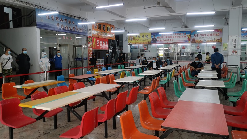 ▲各部门负责同志在饮食服务中心观摩防控演练