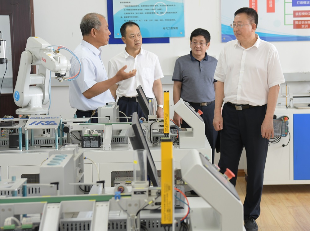 8月18日,黑龙江省政协副主席、党组副书记陈海波一行到我校调研并召开座谈,了解学校建设发展情况和在发展中遇到的困难与瓶颈,实地参观了龙职·华为ICT产业学院、工业机器人训练中心、智能制造训练中心和铺路石文化中心。