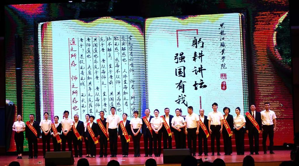 9月10日下午,黑龙江职业学院在工匠楼学府礼堂召开“赓续育人初心,传承师者荣耀”庆祝第40个教师节大会,大会分为致敬篇、表彰篇和传承篇,师生欢聚一堂,用特有的方式表达对党的教育事业的忠诚与热爱。全体校领导及师生代表参加大会。