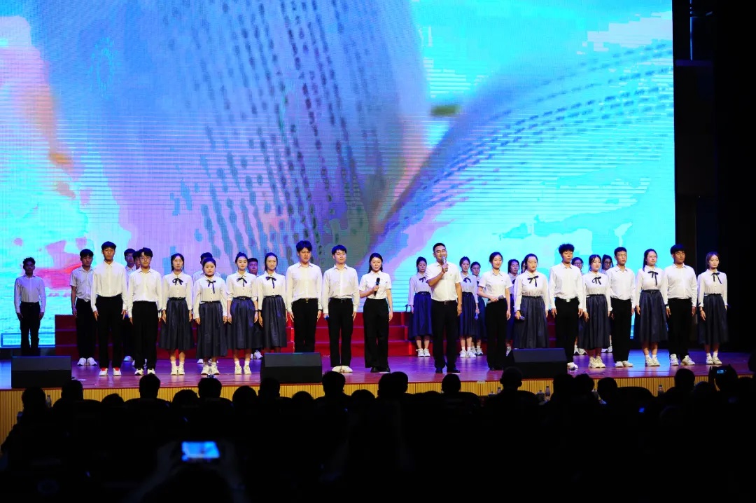 大会期间,学校师生表演了歌曲《好大一棵树》、诗朗诵《灯塔里的光》、歌伴舞《祖国不会忘记》《共筑中国梦》。