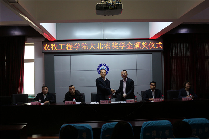 石成金代表企业致辞,对农牧工程学院给大北农的人才支持和人才培养质量给予高度评价,衷心希望与农牧工程学院能够在健康、稳定、快速的轨道上开展更加广泛的合作。并与陈晓华签订“大北农励志奖学金捐赠”协议书,标志着校企双方的合作进入到更深层面和全新的阶段。