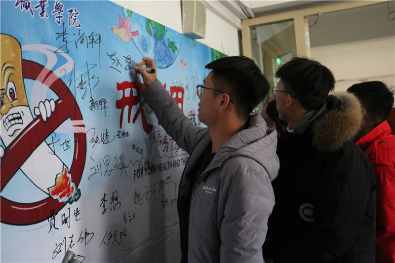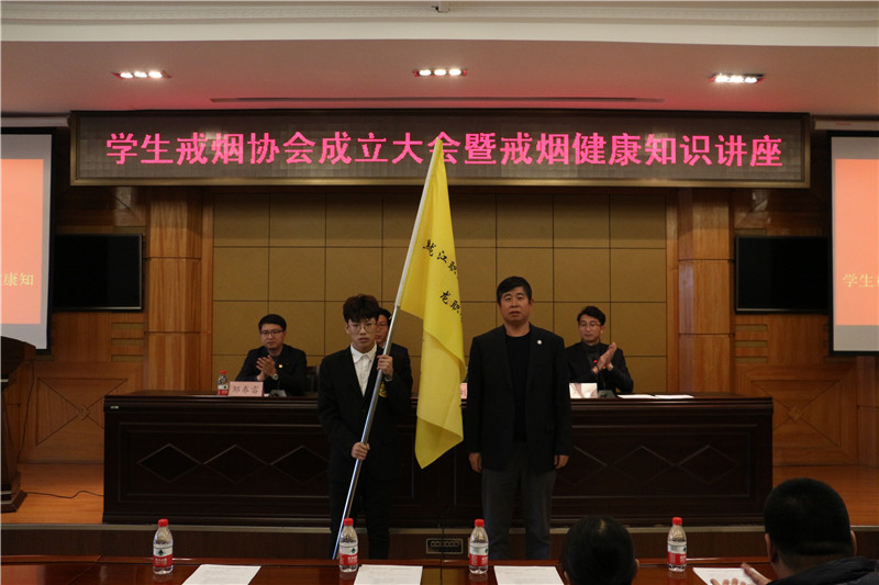 会上,邹春雷宣读《关于成立“龙职”学生戒烟协会的通知》;学工部直属党支部书记、学生戒烟协会顾问刘志坚向学生戒烟协会会长鲁英俊同学进行授旗;鲁英俊同学带领学生戒烟协会全体会员进行集体宣誓并签订了《禁烟承诺书》;建筑工程学院2018级焊接专业苑旺同学代表学生戒烟协会会员表态发言。
