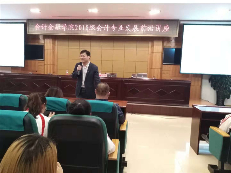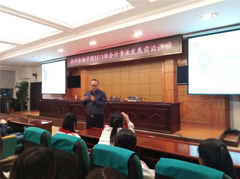 为帮助大一新生更好地树立职业目标,把握未来职业方向,增强学习动力,会计金融学院利用9月26日、27日晚自习时间,邀请用友新道科技股份有限公司副总经理张海冰为2018级会计专业新生进行 “会计专业发展前沿”专题讲座。学院副院长、石倩以及2017级学生干部和2018级新生参加讲座。