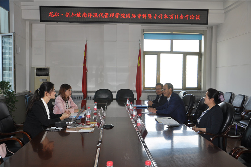 会上,王明海对Jacklyn See一行表示热烈欢迎并详细地介绍了我校的办学规模、办学特色、学科设置以及近年来开展成果导向教育教学改革所取得的各项成绩。Jacklyn See女士对学校的热情接待表示感谢,也对新加坡南洋现代管理学院的基本情况作出简要介绍。之后,院长范海波与Jacklyn See就国际大专班、专升本项目及联合办学的具体学制、学费、双语教学等内容展开深入探讨,并达成初步合作意向。