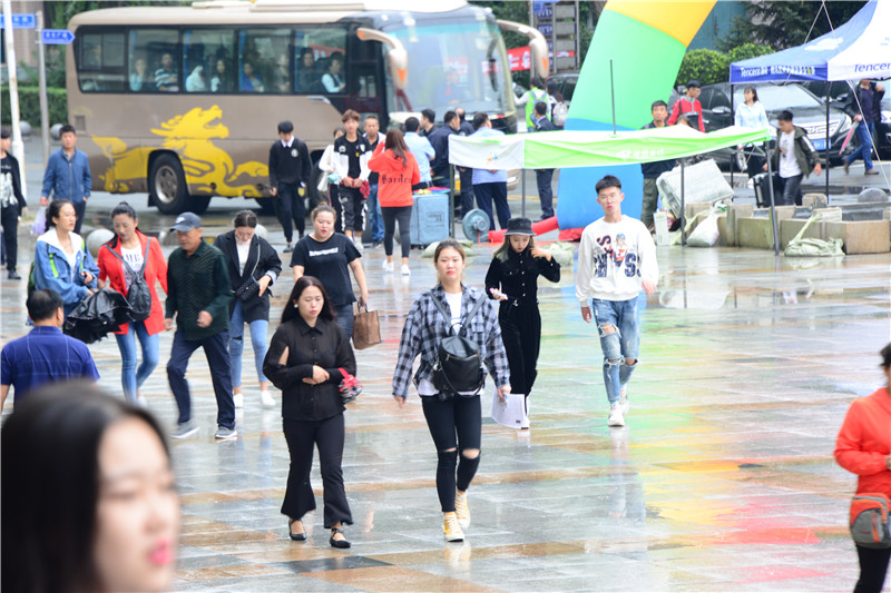 校园迎新现场喜庆祥和、秩序井然。为应对风雨天的影响,各学院做了充分准备,在操场和室内均设置了各具特色的迎新报到地点,受到新生和家长的一致好评;学校在两个校区四个火车站设立了接站点,迎新的教师和大学生志愿服务者从火车站接站,到校门口迎接,再到各项手续办理、咨询解答、绿色通道、寝室入住,无处不体现出贴心和热情。赵继会、周家郁等校领导亲临迎新现场和学生公寓,看望慰问新生和家长,询问新生报到情况,并对迎新现场工作热情周到、有序进行给予充分肯定。