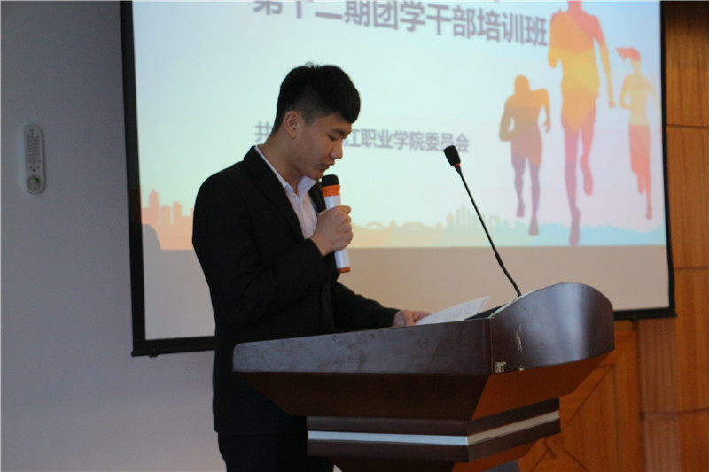 会上,杜超宣读《关于举办第十二期团学干部培训班的通知》;唐晓恬宣读《第十二期团学干部培训班学员管理规定》;培训班学员、校学生会主席朱鑫浩代表学员作大会发言,并带领全体学员入职宣誓。