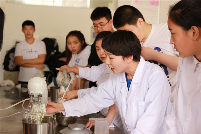 职教活动周期间,食品加工技术专业师生共同开展“双创”成果展,由食品加工兴趣小组的学生组成“双创”团队,每天利用课余时间进入实训室,按照行业标准进行产品生产,并在校园进行展销,现场火爆,获得全校师生一致好评。