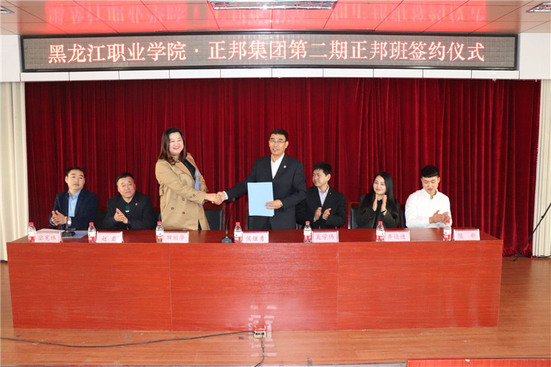 学校与正邦集团,经友好协商,本着“优势互补、共同发展、互惠互利、诚信合作”原则,在自愿平等的前提下,建立校企战略合作关系。4月14日,举行“黑龙江职业学院·正邦集团第二期‘正邦班’签约仪式”,正邦集团龙吉片区人力资源总监田丽华、培训经理吴学伟、招聘经理井迪迪、在职实习学生代表陈新,农牧工程学院党总支书记侯继勇、副院长赵岩出席会议。会议由辅导员宓宪伟主持。