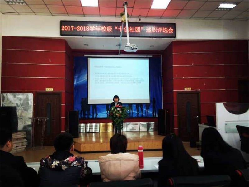 此次“校级十佳社团”评选活动采用“线上线下相结合”的方式开展,通过线上投票、社长述职和PPT制作三个部分综合评量,最终青年志愿者社团、艾微影视社团、炫翼配音社团、博雅读书社团、乐响校园歌手社团、星辰网媒电商社团、春蕾文学社团、天羽跆拳道协会、博弈棋牌协会、口才协会10个社团脱颖而出,荣获2017—2018学年“校级十佳社团”荣誉称号。