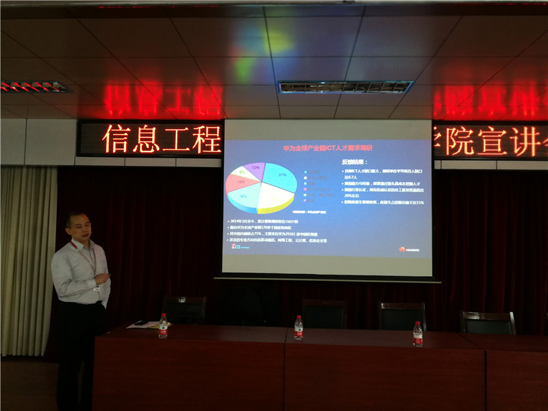 洽谈会后,以“华为ICT行业发展与人才需求”为主题的校园讲座顺利举行,计算机网络技术专业2016级全体学生参加活动。在近一个小时的互动过程中,学生和张宇飞、齐瑞积极互动,整个活动过程气氛热烈。相信通过此次活动能够使学生接触到最新的ICT技术,增加解决实际问题的能力和经验,为以后的学习和工作打好基础,提高未来就业竞争力。