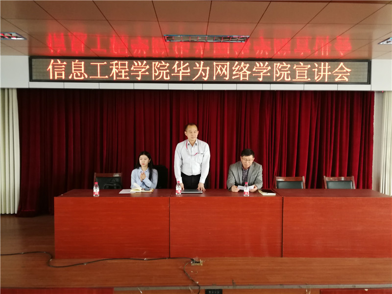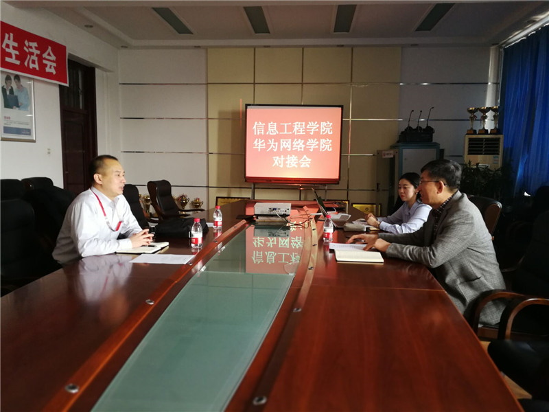3月26日,华为教育解决方案经理张宇飞、黑龙江赋能信息技术有限公司总经理齐瑞来到我校信息工程学院开展校园讲座和校企合作交流活动。党总支书记王文焕参加并主持此次活动。
