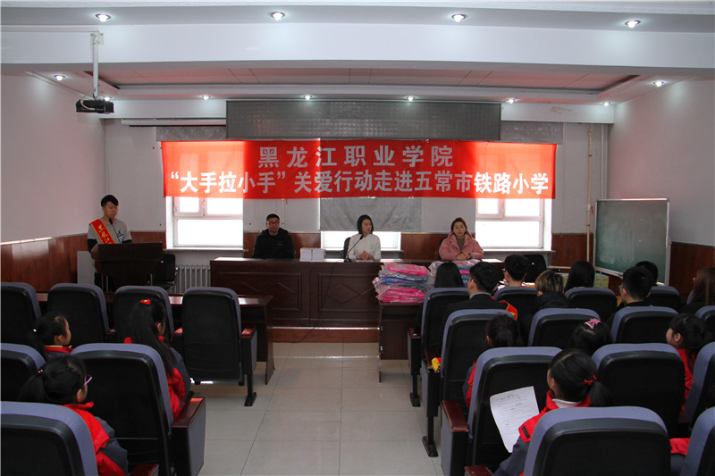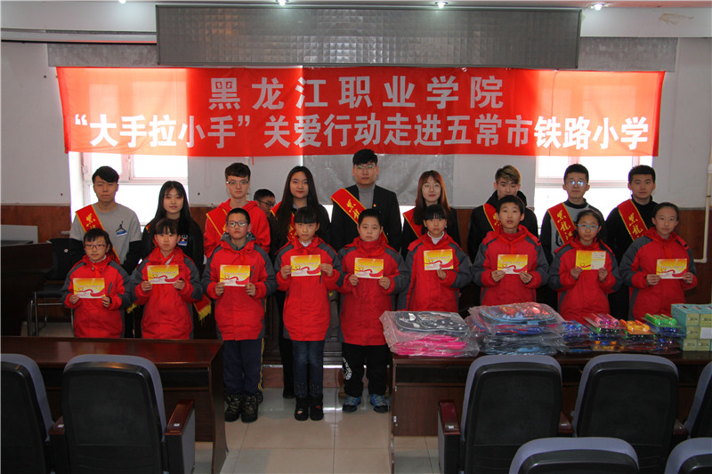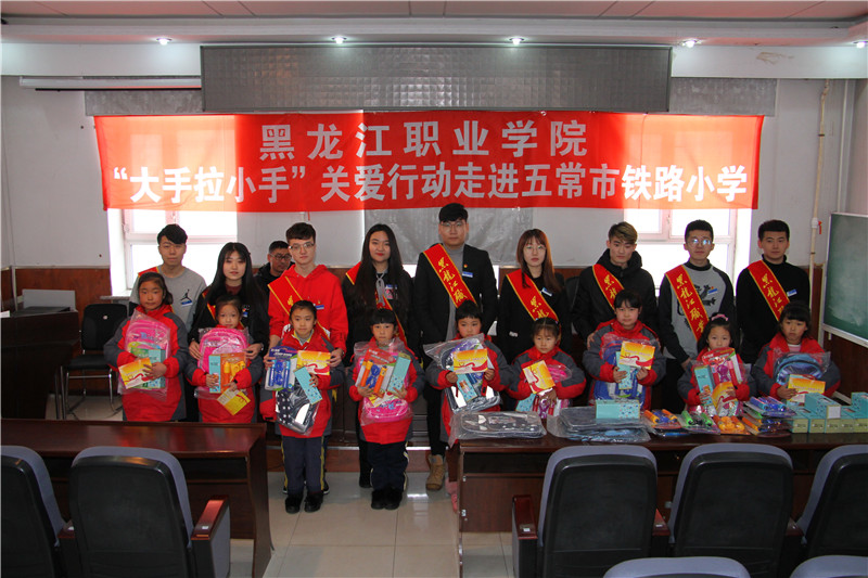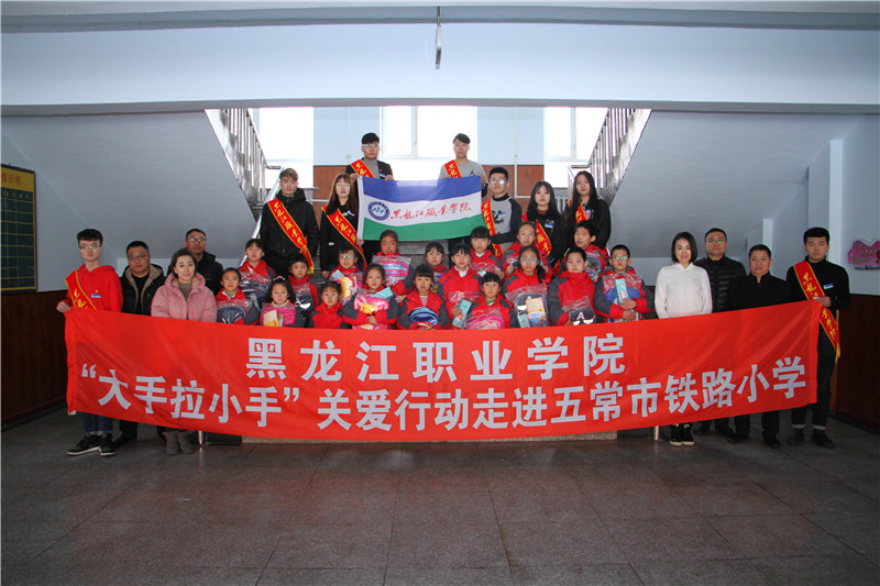 为深入学习贯彻党的十九大精神和习近平新时代中国特色社会主义思想,充分发挥社会实践在加强和改进大学生思想政治教育中的作用,按照省委高校工委、省教育厅《关于开展高校大学生与农村留守儿童“大手拉小手”关爱行动实施方案》文件要求,在我校全面开展“学雷锋活动周”之际,3月7日,由校团委组宣办主任唐晓恬带领校学生会、校社团联合会、校新媒体中心10名学生干部志愿者前往五常市铁路小学开展“大手拉小手”关爱活动。五常市铁路小学校长孙胜民、副校长于振东、政教主任李晓东、政教副主任王志超、大队辅导员韩冷参加活动。
