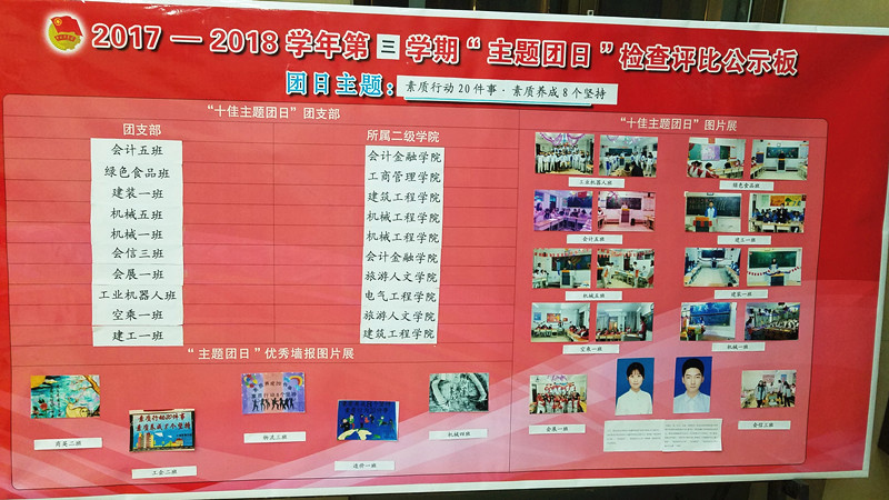 12月27日,校团委组织召开本期“主题团日”总结表彰大会,表彰奖励“十佳主题团日团支部”“最佳墙报创意奖”“最佳团活日志奖”“最佳团活创意奖”和“先进工作个人”。
