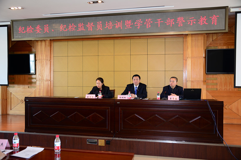 会议由监察审计处副处长林丽华主持。监察审计处副处长李青春宣读基层党组织纪检委员与学生纪检监督员工作职责与工作制度;纪委副书记杨树枫传达《“整顿作风严肃纪律优化环境”专题警示教育活动方案》和《学校党风廉政建设责任制考评办法》,并作题为《知敬畏、存戒惧、守底线》警示教育专题讲座。