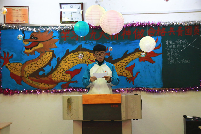 11月14日,建筑工程学院2017级工程造价一班在主楼715教室组织开展“学习十九大精神,做合格青年团员”主题团日活动。副校长郑福贵以兼职班主任的身份参加活动。