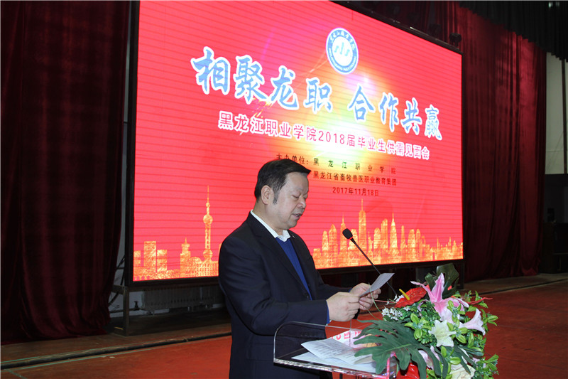 正大集团吉林区销售副总裁张立群代表企业嘉宾致辞,他在热情洋溢的致辞中指出,对于校方搭建能够使企业与毕业生零距离接触的平台,表示由衷的感谢!他说黑龙江职业学院是一所具有六十九年光荣历史的老校,无论是在教学设施上,还是在师资力量上在同类院校中堪称一流,特别是近年来创新开展的成果导向+行动学习,更是成效显著,为社会培养大批高质量的技能人力,是龙职这棵梧桐树引来我们这些金凤凰。