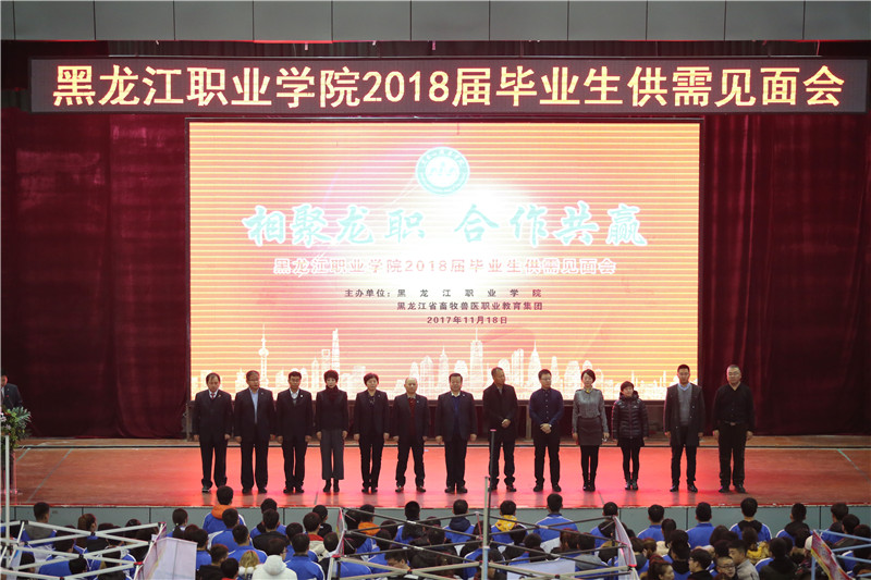 11月18日,学校第二校区体育馆人头攒动,嘉宾如云。学校和黑龙江省畜牧兽医职业教育集团联合举办的2018届毕业生供需见面会在这里如期举行。集团理事长、学校常务副校长刘公远,集团副理事长、黑龙江职业学院副校长孙福忠,集团副理事长刘莉,招生就业处处长孙书春,农牧工程学院党总支书记侯继勇,食品药品学院院长丁原春,信息工程学院院长金忠伟等领导同志出席活动。