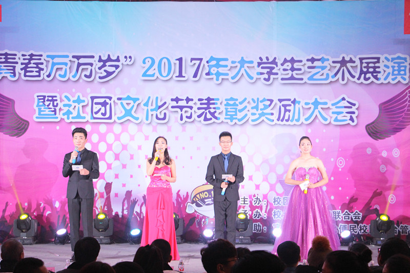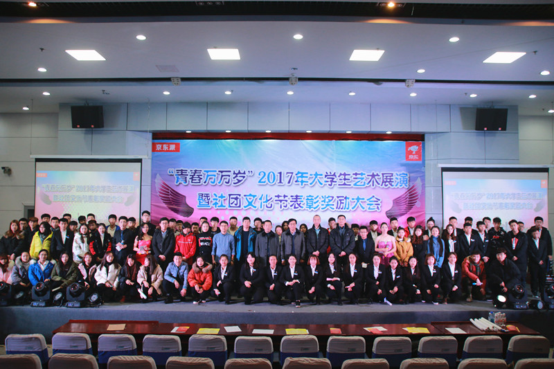 11月21日,由校团委主办、校大学生社团联合会承办、京东商城独家冠名赞助的“青春万万岁”2017年大学生艺术展演暨社团文化节表彰奖励大会成功举办。校党委副书记周家郁,校长助理、学工部部长石明杰,学工部直属党支部书记刘志坚,学工部副部长陈宇辉,校团委书记、学工部副部长邹春雷及有关部门负责同志出席活动,校院两级学生组织、学生干部代表以及社团文化节获奖同学代表等近800人参加活动。