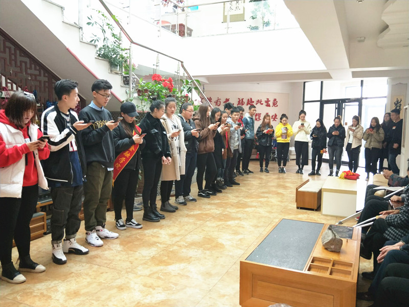 同学们怀着诚挚之心,带着慰问品来到敬老院,让原本清淡寂寞的养老院充满笑声。同学们为老人削水果、制作插花,陪老人聊天。同学们和老人交谈的同时,认真倾听老人们讲述着年轻时的个人经历,同学们也把自己现在读书情况以及自己家乡情况给老人们讲述,一边跟老人谈心一边为老人捶背、揉腿。同时,同学们为老人们献上《当你老》《水手》等歌曲,老人们也与同学们共同唱起《映山红》。