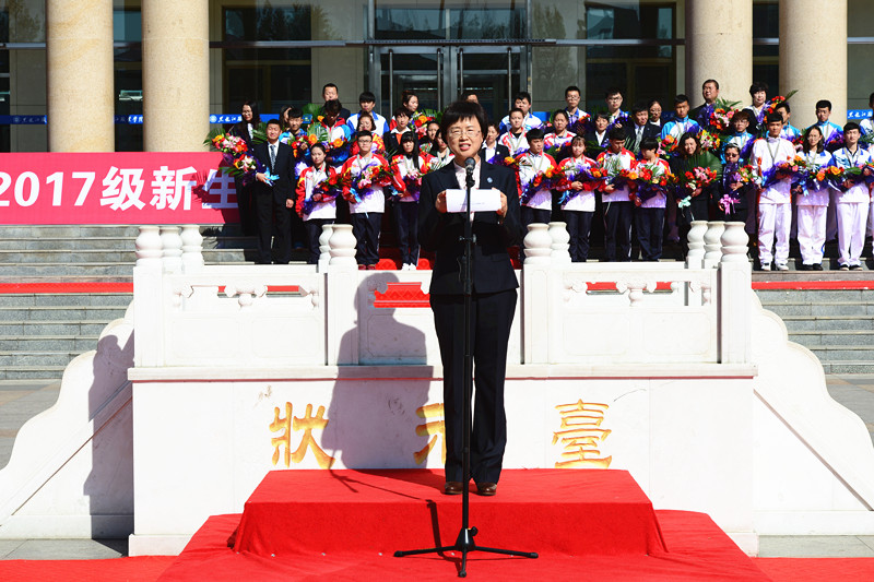 今天,我们隆重举行2017级新生开学典礼,我谨代表全体教职工,对加入龙职大家庭的4600余名新同学,表示热烈的欢迎!向前来参加开学典礼的各位领导和承担本次军训任务的武警官兵,表示诚挚的感谢!向所有获得龙职奖、登上状元台的同学和教师,表示衷心的祝贺!