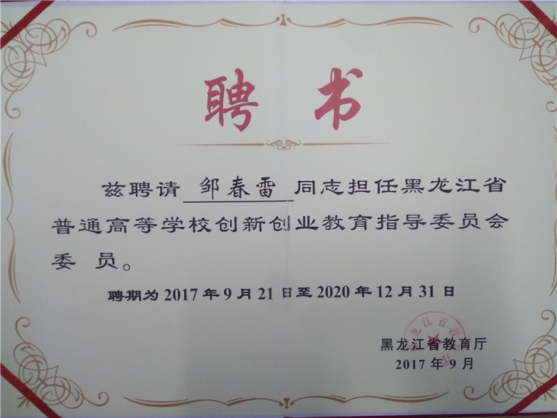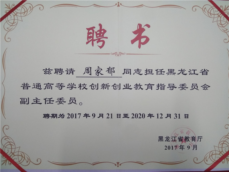 9月21日,黑龙江省普通高等学校创新创业教育指导委员会(简称“省创指委”)成立大会在黑龙江大学隆重召开。学校党委副书记周家郁,工商管理学院院长、龙职中科创业学院院长张凤英,校团委书记、双创办主任邹春雷等学校领导和有关部门负责同志参加会议。学校被确立为“省创指委”职教专项分指导委员会单位,周家郁被聘为“省创指委”副主任委员,张凤英、邹春雷、宋红霞三位同志被聘为“省创指委”委员。大会由省教育厅高教处处长蒋鲲主持。