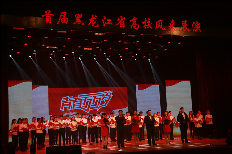 5月5日,由中共黑龙江省委宣传部、共青团黑龙江省委、黑龙江广播电视台主办,龙广高校台承办的“青春万万岁”首届黑龙江省高校风采展演活动在黑龙江东方学院礼堂举行。团中央宣传部副部长陈章乐、团省委副书记陈凯云、黑龙江广播电视台副台长王文堂、省委宣传部文艺处处长黄锦秋与百余名各高校师生一同观看展演。我校团委书记邹春雷带领我校演出团队和100名学生代表参加活动。