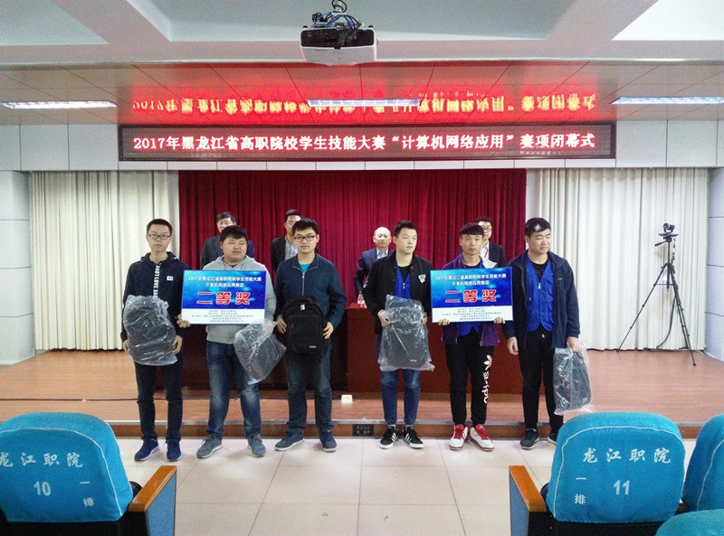 4月15日,2017年黑龙江高职院校学生技能大赛“计算机网络应用”赛项在我校正式开赛,此赛项由黑龙江省教育厅主办,我校承办,由黑龙江省高职高专计算机类专业教学指导委员会和锐捷网络股份有限公司协办。来自全省14个高职院校代表队的42名选手报名参加本次竞赛,竞赛共决出团体一等奖1个、二等奖3个、三等奖4个,我校信息工程学院代表队获第二名,获国赛参赛资格。黑龙江职业学院副校长孙福忠出席大赛闭幕式。