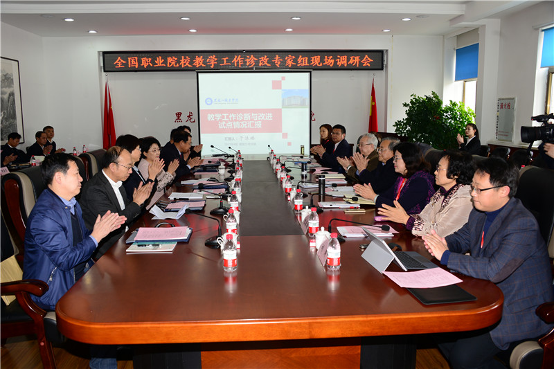 4月19 -20日,全国高职诊改专家组来我校现场调研。专家组成员包括全国诊改专委会主任杨应崧,全国诊改专委会委员汪建云、樊至光、贾俐俐、蔡红、陈春梅、宗美娟,全国诊改专委会秘书处秘书、常州工程职业技术学院办公室主任刘涛。黑龙江省教育厅副厅长王淑云、教育厅职成处处长丁哲学、副处长李海涛、省诊改委主任王凤君参加调研,哈尔滨职业技术学院、黑龙江农业工程职业学院的相关领导和部门负责人参加活动。