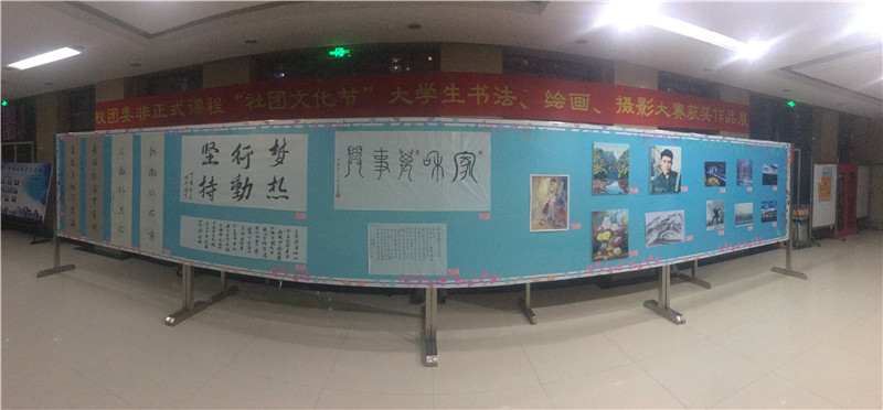 近日,我校以“梦想与同行”为主题的大学生书法绘画摄影大赛圆满落下帷幕。本次书法绘画摄影大赛是校团委非正式课程“大学生社团文化节”系列活动之一,以充分展示当代大学生心系祖国、肩负使命,为实现中华民族伟大复兴的中国梦而努力奋斗的远大理想;展现当代大学生与祖国同行、与人民同行、与时代同行、与理想同行的崇高追求为宗旨。 大赛共征集作品60幅,其中书法类作品10幅、绘画类作品12幅、摄影类作品38幅,作品数量多、质量高、形式多样。经评审,工商管理学院学生李庆华的书法作品《坚信梦想》、旅游与人文艺术学院学生周浩的绘画作品《舞女》和建筑工程学院学生李竞源的摄影作品《夜幕下的龙职》分别荣获各赛项一等奖。4月24日大赛获奖作品在主楼大厅集中展出,吸引广大师生驻足观看。