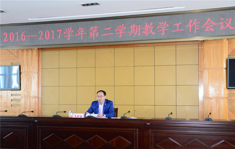 2月23日,学校召开2016-2017第二学期教学工作会议,总结上学期教学工作并安排部署新学期各项教学工作。各二级学院院长、教学副院长,教学行政部门负责人以及各专业教研室主任和教师代表参加会议。会议由副校长王明海主持并讲话。