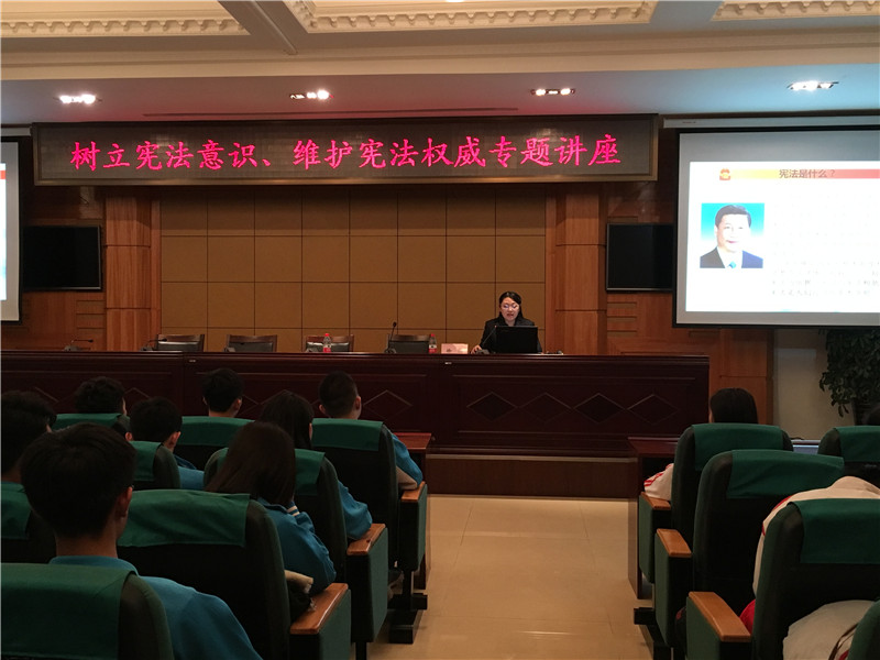 12月4日,是国家宪法日,学校举行法治宣传讲座,思想政治教研部教学主任徐瑛主讲。