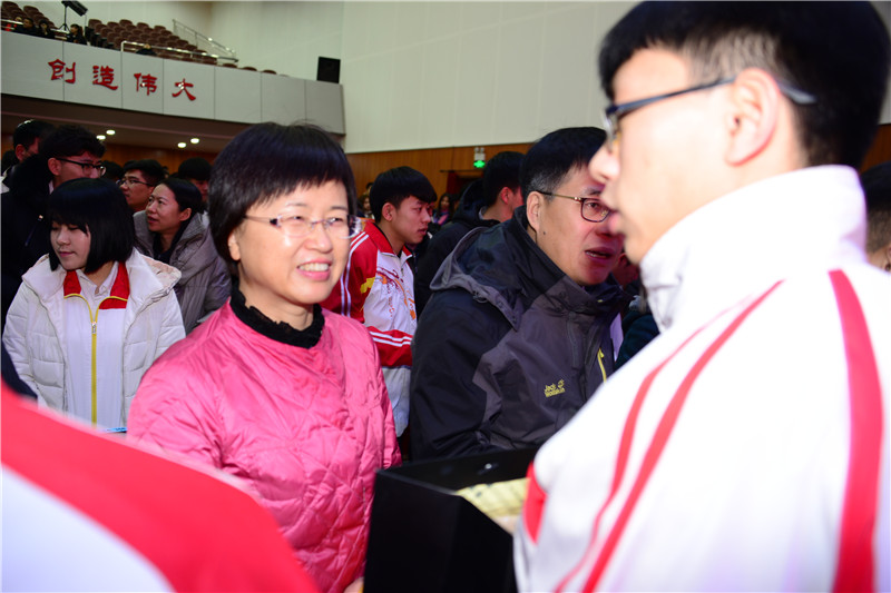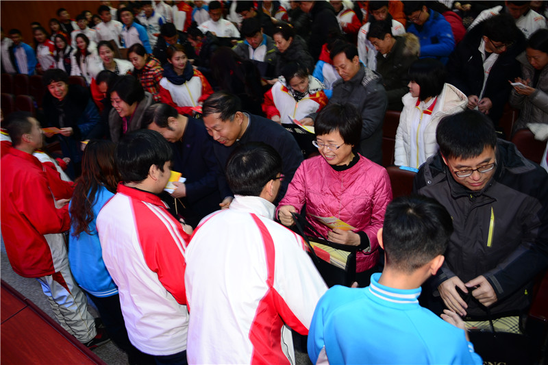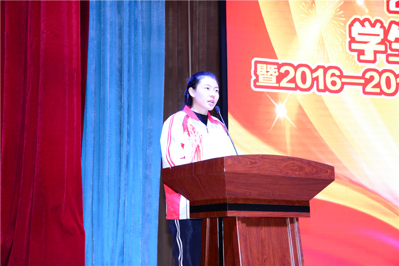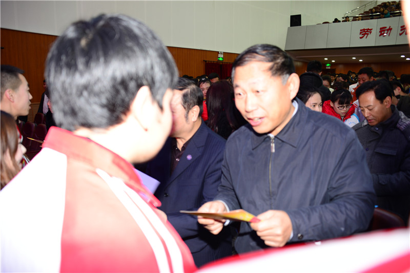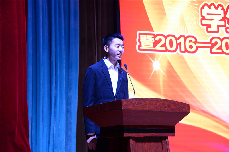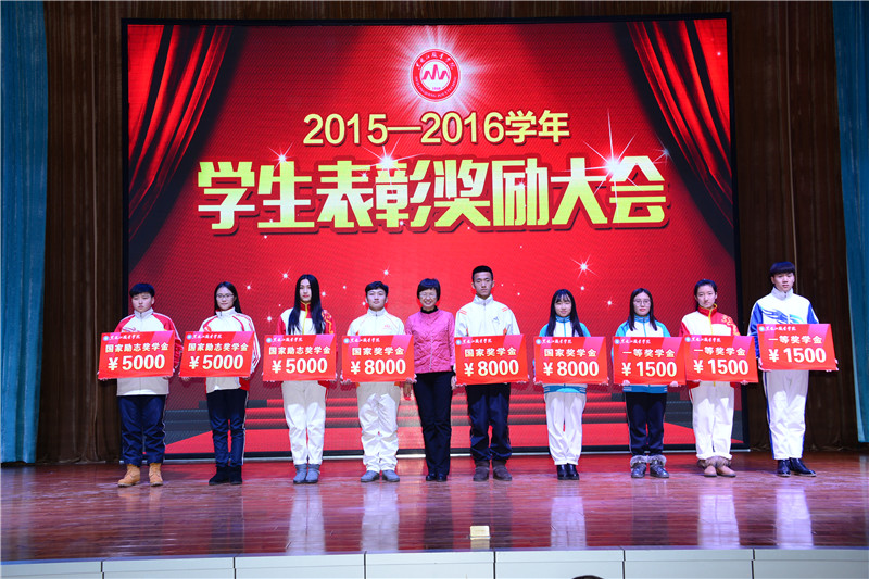 大会程序严谨,内容紧凑,场面热烈隆重。会上,学校干部教师与209名家庭经济特别困难的学生结成帮扶对子;为310名家庭经济困难学生发放越冬棉衣;为168名家庭经济困难学生购买返程车票,送上学校党委和全体教职工的关怀和温暖;为747名学习勤奋刻苦、品学兼优的学生颁发奖学金;为40个学风优良、团结协作的优秀班集体颁发奖牌;为634名三好学生、优秀学生干部等先进个人颁发证书和奖品。有6名同学作为先进典型代表交流发言,事迹真实感人,引领示范作用强。特别是工商管理学院学生王博做为“优秀学生干部”代表的发言,感染力强,鼓舞人心,催人上进,得到全校师生好评。