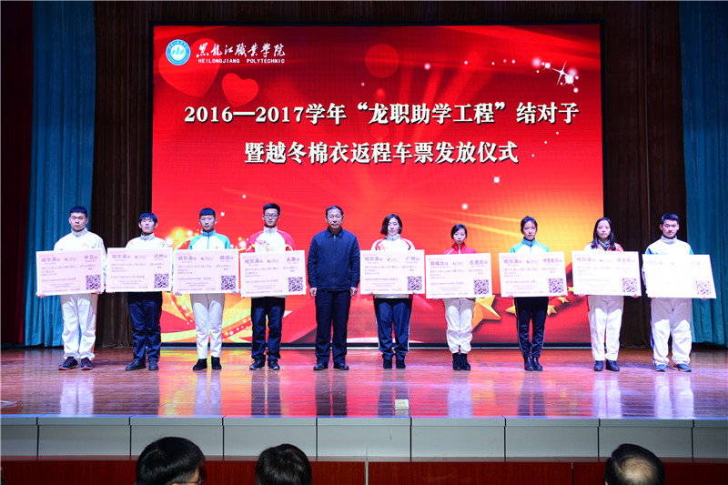 为完善国家、省、学校三级学生资助体系,创新“三全育人”理念实践,践行“当好学生的铺路石” “龙职”核心价值观,学校于2012年开始实施“龙职助学工程”,共有千余名学生得到资助。仅2016年,学校共发放国家各类奖助学金824.8万元,奖励资助4942名家庭经济困难且品学兼优的学生,发放国家助学贷款668.63万元,共952名学生受益。