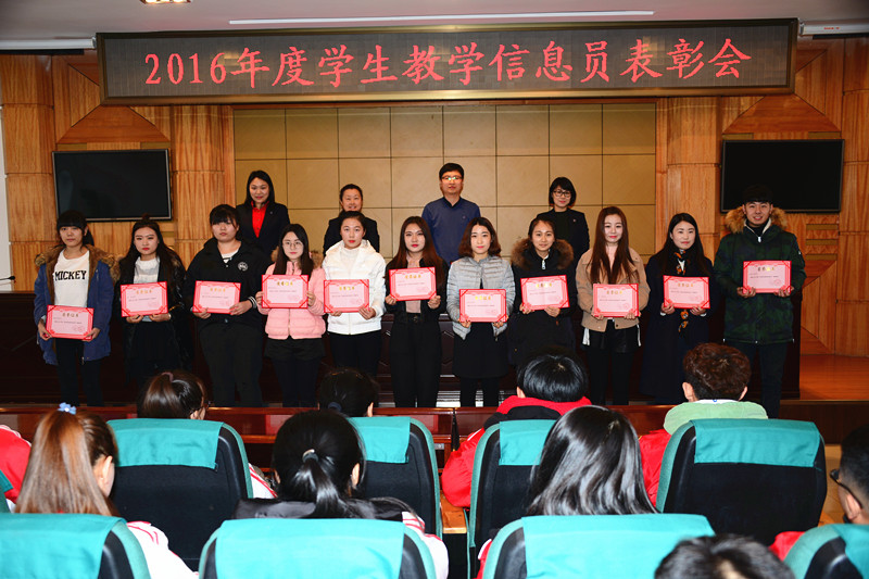 11月14日、15日,第一、二校区分别召开2016年学生教学信息员表彰会议。质量监控中心主任祝伯红、副主任高金华,校团委书记邹春雷、第二校区团委书记于满昌参加会议。