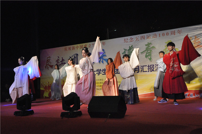 4月26日,由校团委主办、校大学生社团联合会承办、中国电信公司哈尔滨分公司赞助支持的“展社团风采·谱青春华章”2019年大学生社团文化月汇报演出顺利举办。学工部部长石明杰、校团委书记邹春雷及有关部门同志观看了整场演出,校、院两级学生社团会员代表近1500人参加活动。