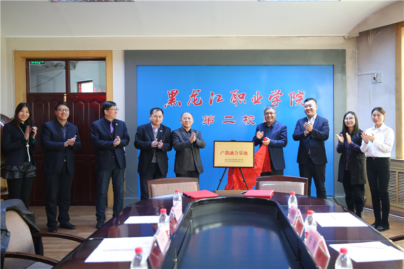 黑龙江职业学院副院长孙福忠和天阳宏业科技股份有限公司总监景士俊共同为产教融合基地揭牌