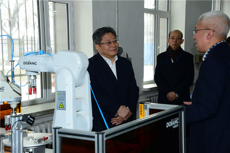 孙东生深入到学校工业中心、工业机器人实训室、空乘实训中心等校内实训基地,了解学生校内实训和实训室使用管理的相关情况。孙东升特别关注了工业机器人专业的发展建设,指出推动新技术的应用是职业教育的责任,希望学校要在把握发展重点,把特色专业做优做精,达到国内领先水平。孙省长对我校和哈尔滨工业大学机器人集团的合作表示肯定,希望学校要创新人才培养模式,积极整合高端优质的教育资源,把职业教育的基本要求变成发展优势,切实提高学生的实践动手能力。