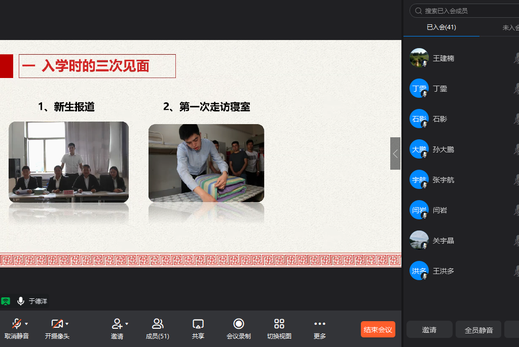 8月25日,学校第十九期辅导员培训班暨2021年新生辅导员、新入职辅导员岗前培训通过 “钉钉”APP以线上会议形式进行。学校党委副书记周家郁、学工部班子成员、各二级学院学管院长、学管办主任及全体新入职辅导员、新生辅导员参加培训班开班式,学工部长石明杰主持开班式培训会。