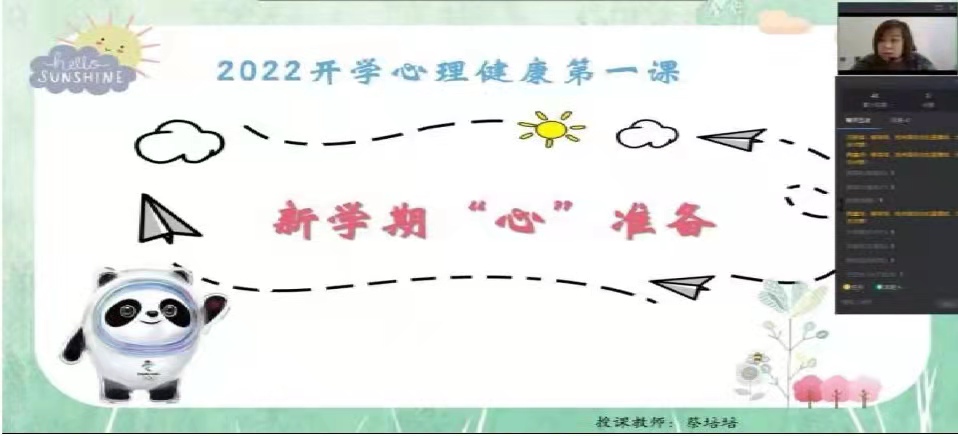 心理健康分享会以“新学期‘心’准备”为主题,学校心理健康团队主讲教师为同学们重点讲授了“调整心情、拨云见月,改变思维、向阳而生,合理规划、迎风启航,你非孤岛、爱在身旁”四项内容,通过疫情常态化的案例分析帮助学生正视了“封校管理”,转变了“封校=失去自由”的固有思维,建立了“封校=自我管理能力挑战”正确的思维模式。同时,对学生做好返校前的情绪管理和压力释放也起到了积极的指导作用。