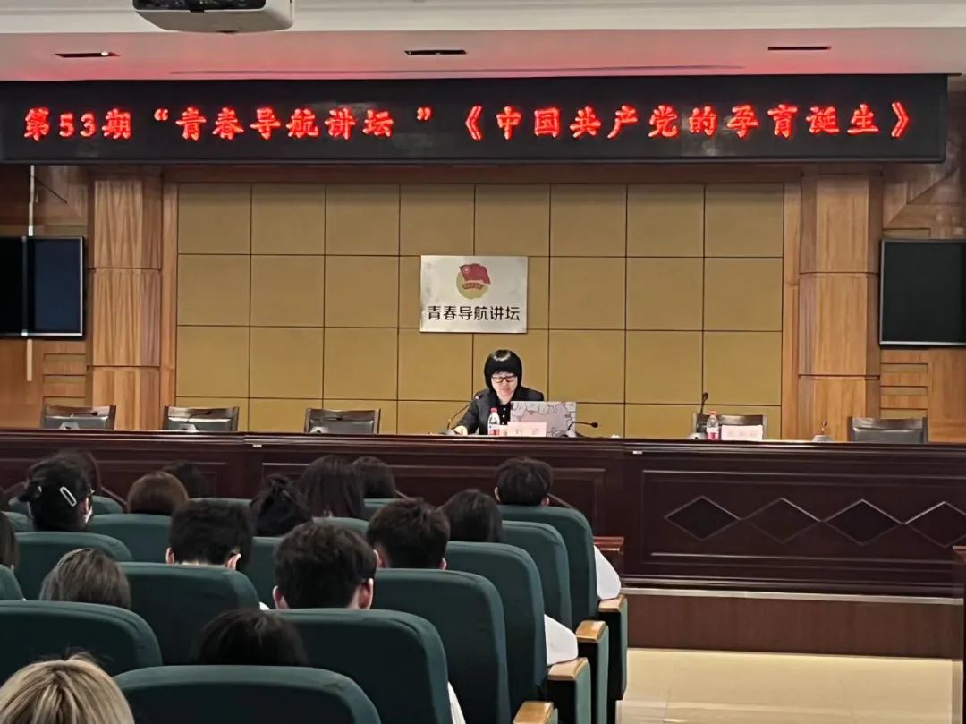 为深入学习宣传贯彻党的二十大精神,纪念五四运动104周年,5月4日下午,校团委在学校清华楼报告厅举办第53期“青春导航讲坛”,本期讲坛特邀学校办公室刘岩副教授为同学们作题为《中国共产党的孕育诞生》的专题讲座,讲座活动系校团委落实学校“学习贯彻习近平新时代中国特色社会主义思想主题教育”的具体实践,旨在通过举办“学思想”系列讲座,帮助我校青年学子不断提升理论素养,从党的百年历程中汲取智慧和力量。各二级学院学生代表近240人聆听了此次讲座。讲座活动由校团委干事马雨薇主持。