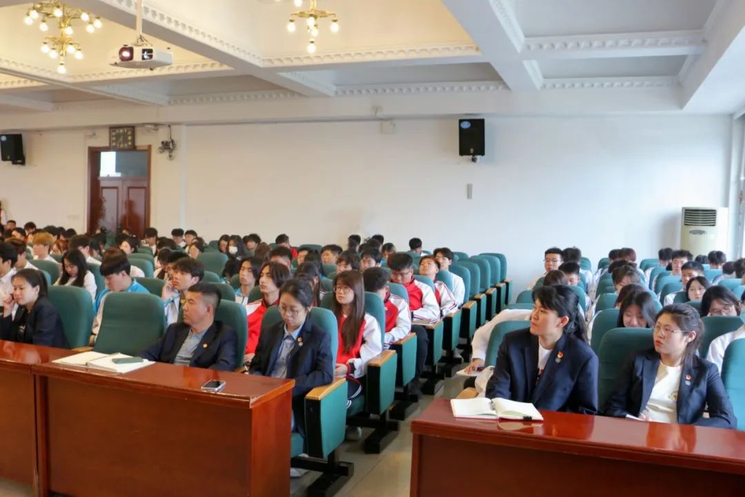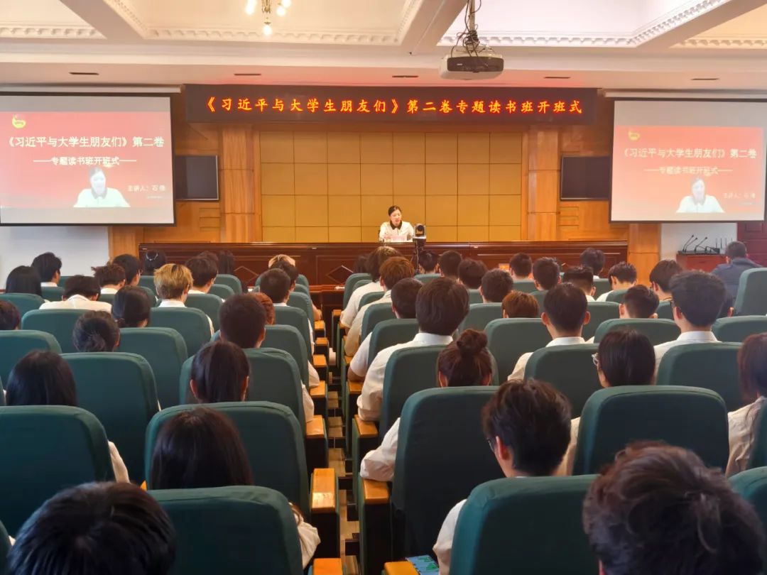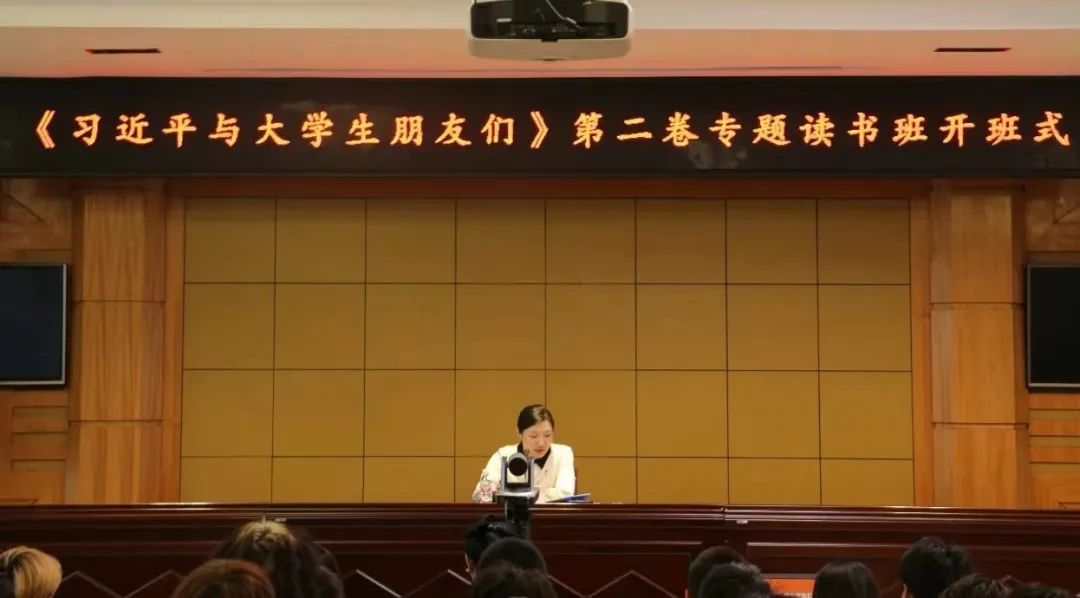 为落实《“为中国式现代化挺膺担当——青春年少好读书”2024 年主题读书季工作指引》要求,重点做好《习近平与大学生朋友们》(第二卷)的学习交流,在校园掀起学习贯彻习近平总书记重要寄语精神的热潮,让广大青年大学生感受到习近平总书记的殷切期望和自身肩负的责任和使命。我校于5月17日晚17:30在九楼经济报告厅举办《习近平与大学生朋友们》(第二卷)专题读书班开班式,校团委全体人员、各二级学院团总支书记、青年教师代表、学生副书记、2022 级、2023 级团支书参加本次活动。校团委副书记唐晓恬介绍读书班日程安排及具体要求,校团委书记石倩作题为《大学生朋友-习近平》第一讲。