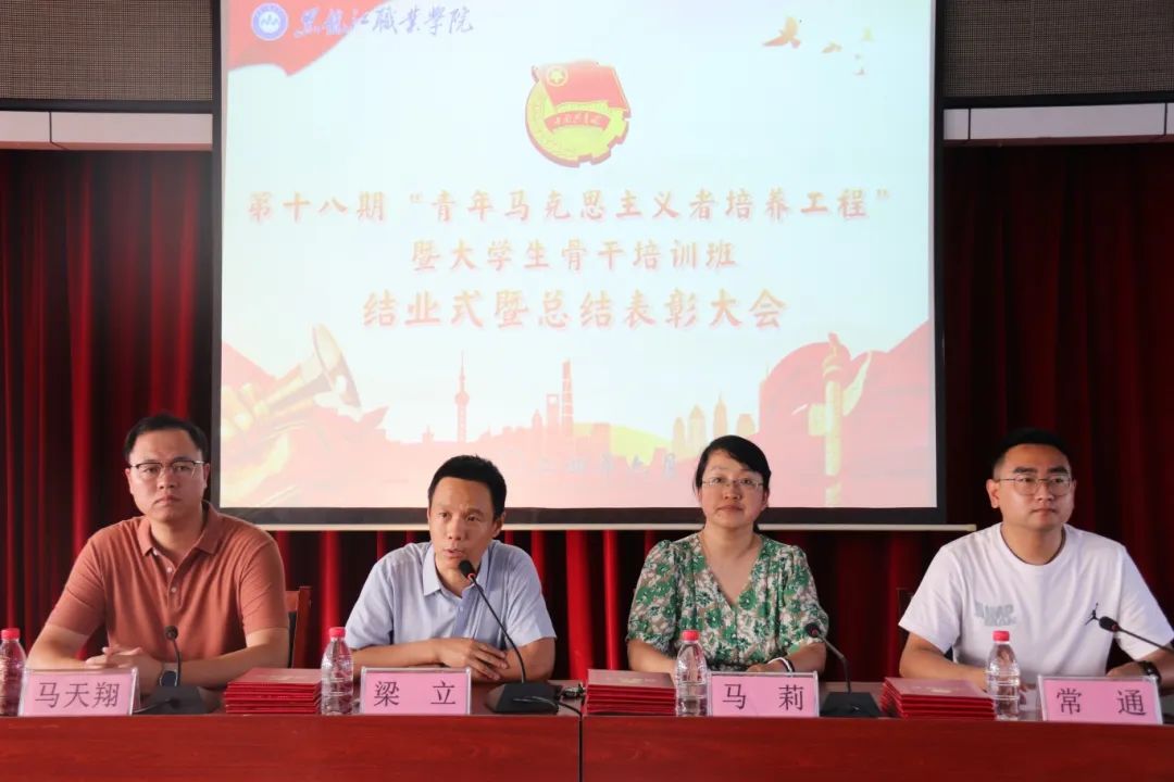 为深入学习宣传贯彻习近平新时代中国特色社会主义思想和党的二十大精神,培养一批信仰坚定、能力突出、素质优良、作风过硬的青年政治骨干,黑龙江职业学院第二校区团委于6月17日至27日在二号教学楼六楼会议室举行了第十八期“青年马克思主义者培养工程”暨大学生骨干培训班。校团委直属学生组织副部长以上和二级学院团总支直属院级学生组织副部长以上共计120名工作人员参加了培训,培训班由校团委干事常通主持。