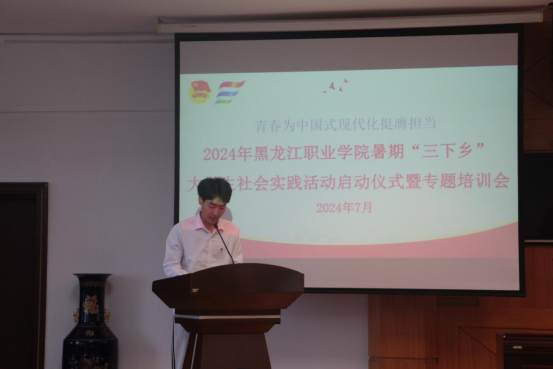 7月3日下午 2:00校团委在我校清华楼九楼报告厅开展2024年“三下乡”大学生社会实践活动启动仪式暨专题培训会。参会人员有马克思主义学院党总支书记程刚、学生工作部部长赵彦生、校团委全体教师代表、二级学院团总支书记、教师副书记、实践团队学生代表,启动仪式由校团委副书记唐晓恬主持。