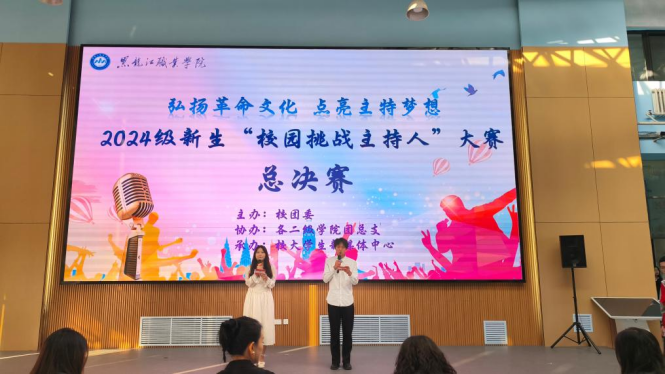 为深入贯彻落实党的二十大精神和习近平文化思想,培育和践行社会主义核心价值观,坚持守正创新,着力赓续中华文脉,弘扬革命文化,展现新时代青年的风采和才华,提高龙职学子的语言表达能力和综合素质,为新生们提供了一个展示自我,追逐主持梦想的平台,丰富同学们的校园文化生活,11月13日下午13点30分,校团委组织开展了“弘扬革命文化,点亮主持梦想”2024级新生校园挑战主持人大赛总决赛,比赛现场气氛热烈非凡。
