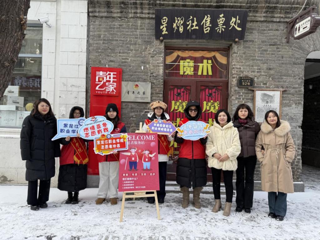 在慰问过程中,哈尔滨团市委副书记刘婷婷对志愿者们的工作提出以下两点要求。一是要求各位志愿者们要增强主动创新意识,运用专业知识和方法开展工作,用实际行动诠释“奉献、友爱、互助、进步”的志愿服务精神;二是强化责任意识,以高度的使命感、责任感、荣誉感投入到志愿服务工作中,不断提升自己的综合素质和能力水平,为哈尔滨的文旅宣传和迎接亚冬会的成功举办贡献青春力量。最后团市委副书记刘婷婷、孟春琦对辛勤付出的志愿者们给予充分的鼓励和高度的认可。志愿者们的无私奉献和热情服务,不仅为中华巴洛克街区增添了活力,也为哈尔滨城市形象的提升贡献了青春力量,同时学校校团委书记石倩提醒志愿者们在活动期间要注意天气变化做好保暖措施,注意自身安全,并对志愿者们的表现提出高度赞扬。本次志愿服务活动不仅展现出了龙职青年的青春风貌更展现出了当代大学生的时代担当。