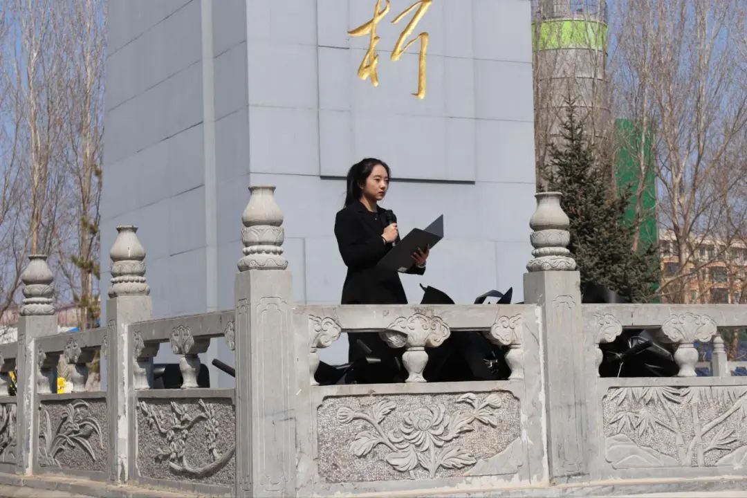 中午12时,由80余名学生代表组成的志愿者队伍,在第二校区团委老师的带领下前往双城区烈士陵园。怀着对革命先烈的崇高敬意,携带清扫工具的同学为烈士纪念碑清理灰尘,学生代表向烈士纪念碑敬献花篮并领读誓词,以表达对烈士沉痛的哀悼和深切的思念。