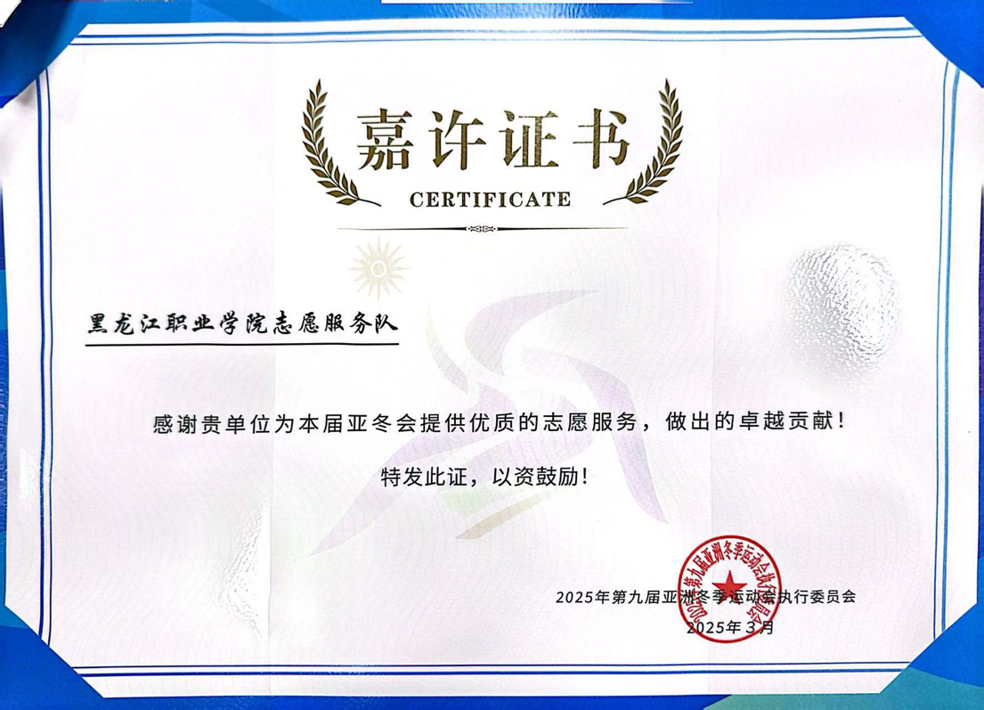近日,我校志愿服务队凭借出色表现,荣获亚冬会执委会颁发的嘉许证书,此次荣获嘉许证书,不仅是对志愿者个人的肯定,更是对我校志愿服务工作的高度赞扬。