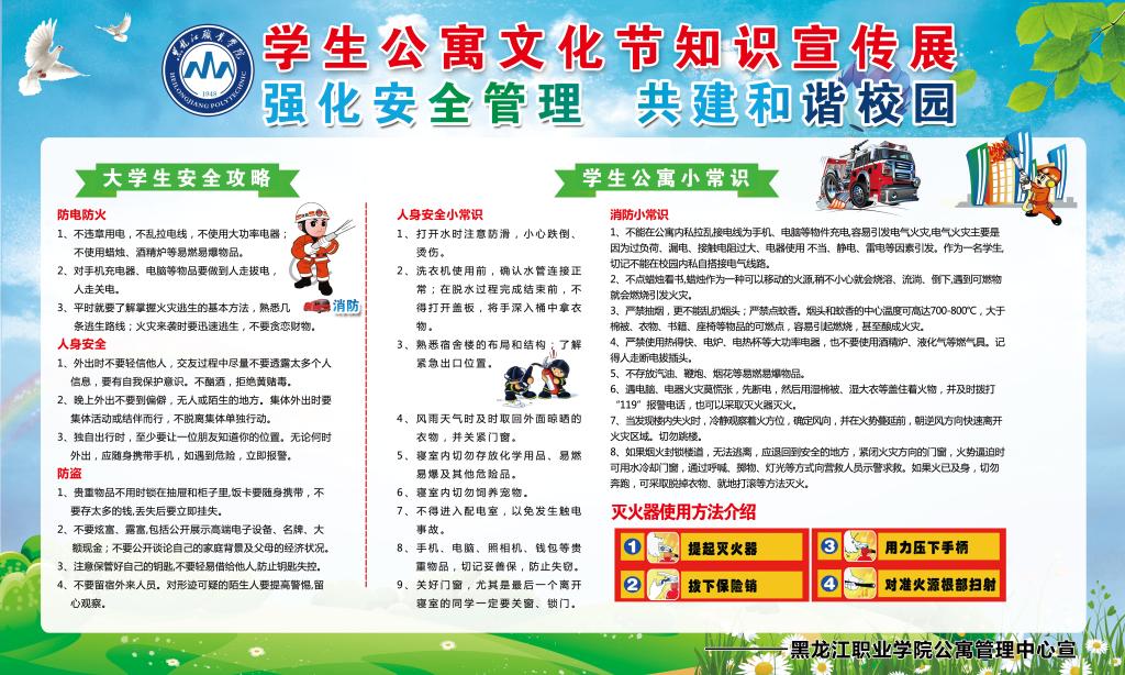 此次活动以学生公寓为宣传阵地,以公寓安全“预防为主,教育先行”为目的,教育学生树立安全意识、掌握安全知识、提高自我保护能力,为营造“珍爱生命,安全第一”的良好校园氛围,保障学校的教育教学工作健康有序的开展起到了积极促进作用。