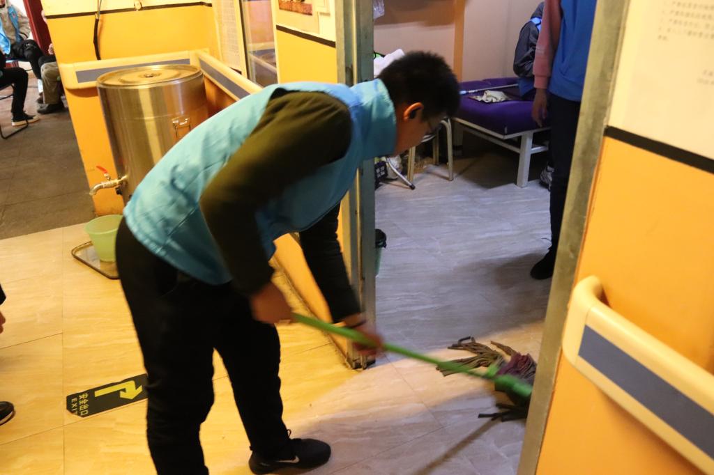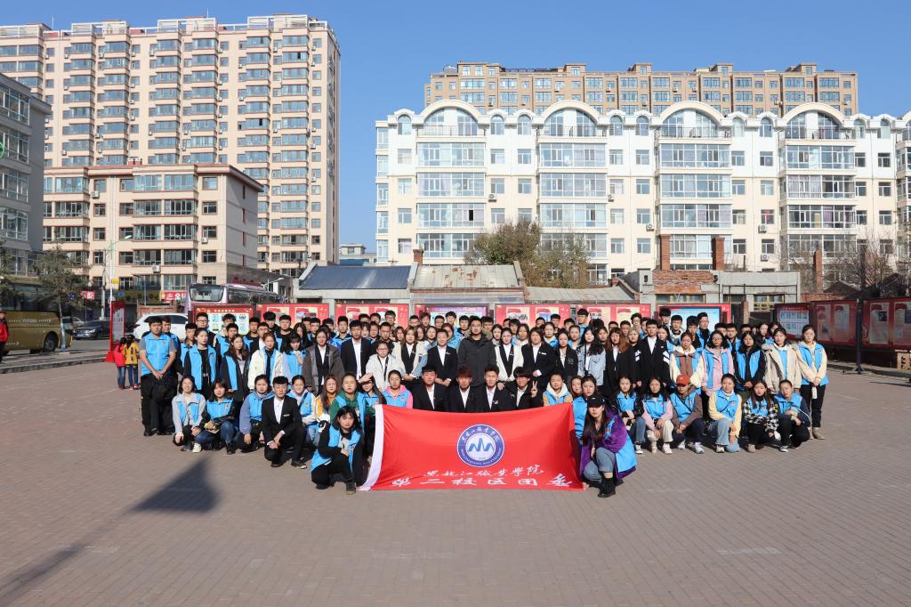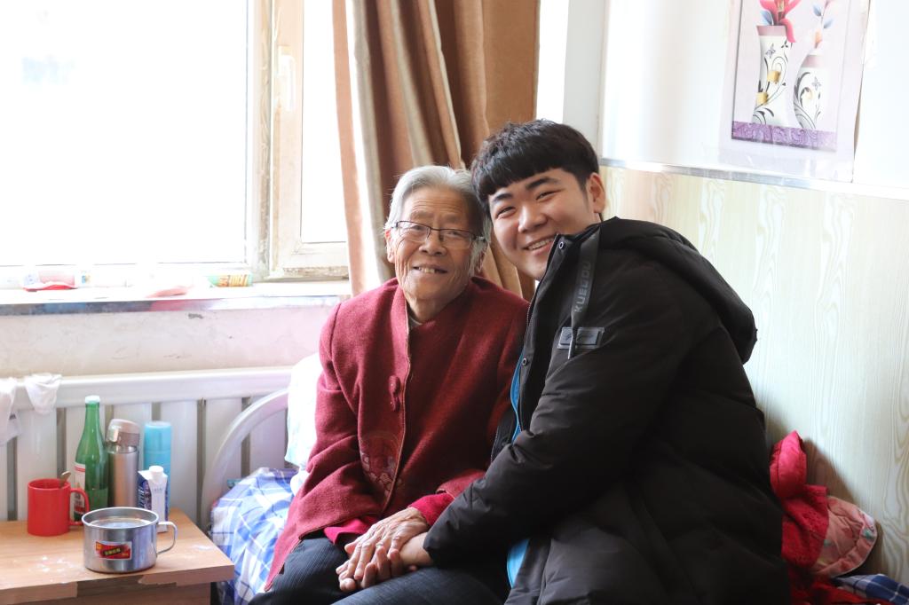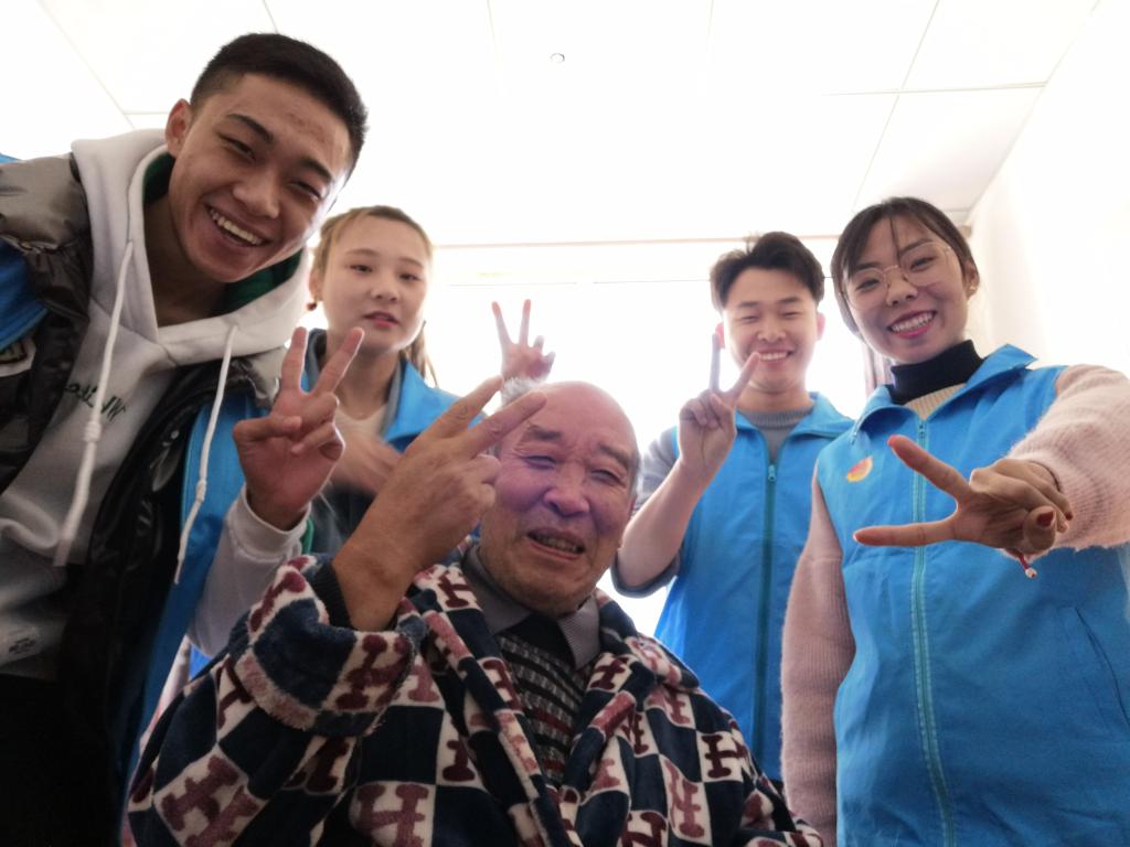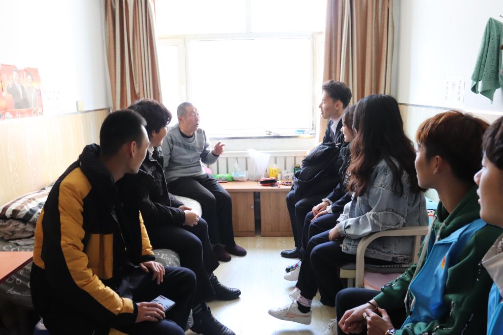 上午9时, 由100余名团学干部组成的志愿者队伍,在常通老师的带领下来到双城区颐养阁老年公寓。他们深入老人们的房间,帮助整理卫生,陪伴老人们聊天,并为老人表演精心筹备的节目。老人们充满自豪地讲述改革开放前后的个人经历和无私贡献,让志愿者了解到今日幸福生活的来之不易。志愿者在聆听的同时,也将自己有趣的故事同老人们分享,使老人们的脸上洋溢着幸福的笑容,整个老年公寓里萦绕着爱的暖流。