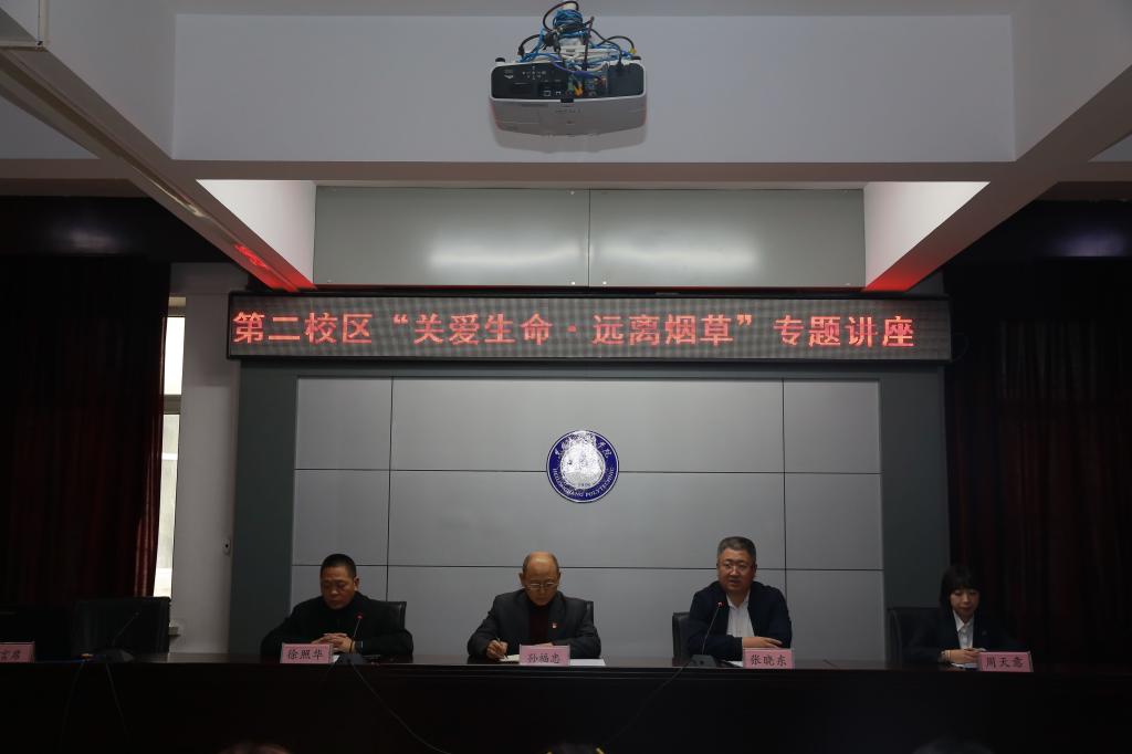 11月18日,第二校区“关爱生命,远离烟草”专题讲座,在图书馆三楼多功能厅如期举办。黑龙江职业学院副院长孙福忠到会并讲话,各部门及二级学院师生代表近120人参加会议。会议由学校综合办公室党支部书记张晓东主持。